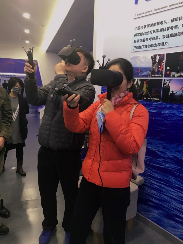 此次参观共有8个部分,其结合习总书记对中科院提出的“三个面向”和“四个率先”要求,展示了大量的数据图片、成果实物、理论模型等,并设置VR深渊科考、智能投票系统、毛笔字书写仪等体验互动环节,全面展现了中国科学院“出人才,出思想”的光辉历程。