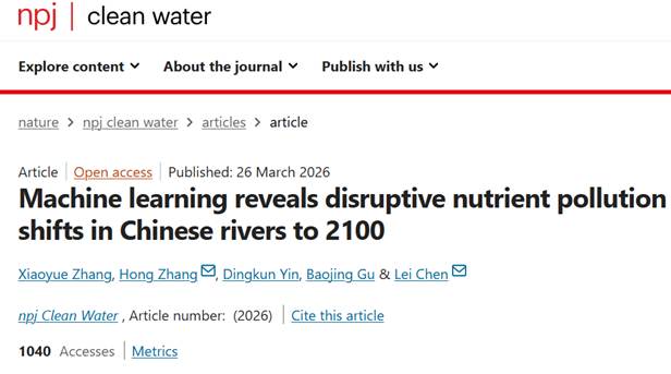 该研究成果以“Machine learning reveals disruptive nutrient pollution shifts in Chinese rivers to 2100”为题,于2026年3月发表在《npj clean water》。Betway·必威(西汉姆联)陈磊教授、中国科学院生态环境研究中心张洪研究员为通讯作者,中国科学院生态环境研究中心张潇月(Betway·必威(西汉姆联)获博士学位)为论文第一作者。交通运输部规划研究院印定坤、浙江大学环境与资源学院谷保静教授为论文合作作者。该研究得到了国家自然科学基金基础科学中心项目(52388101)资助。
