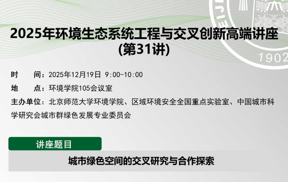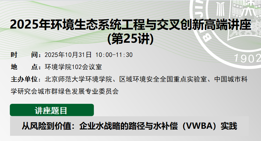 2025年环境生态系统工程与交叉创新高端讲座(第31讲)