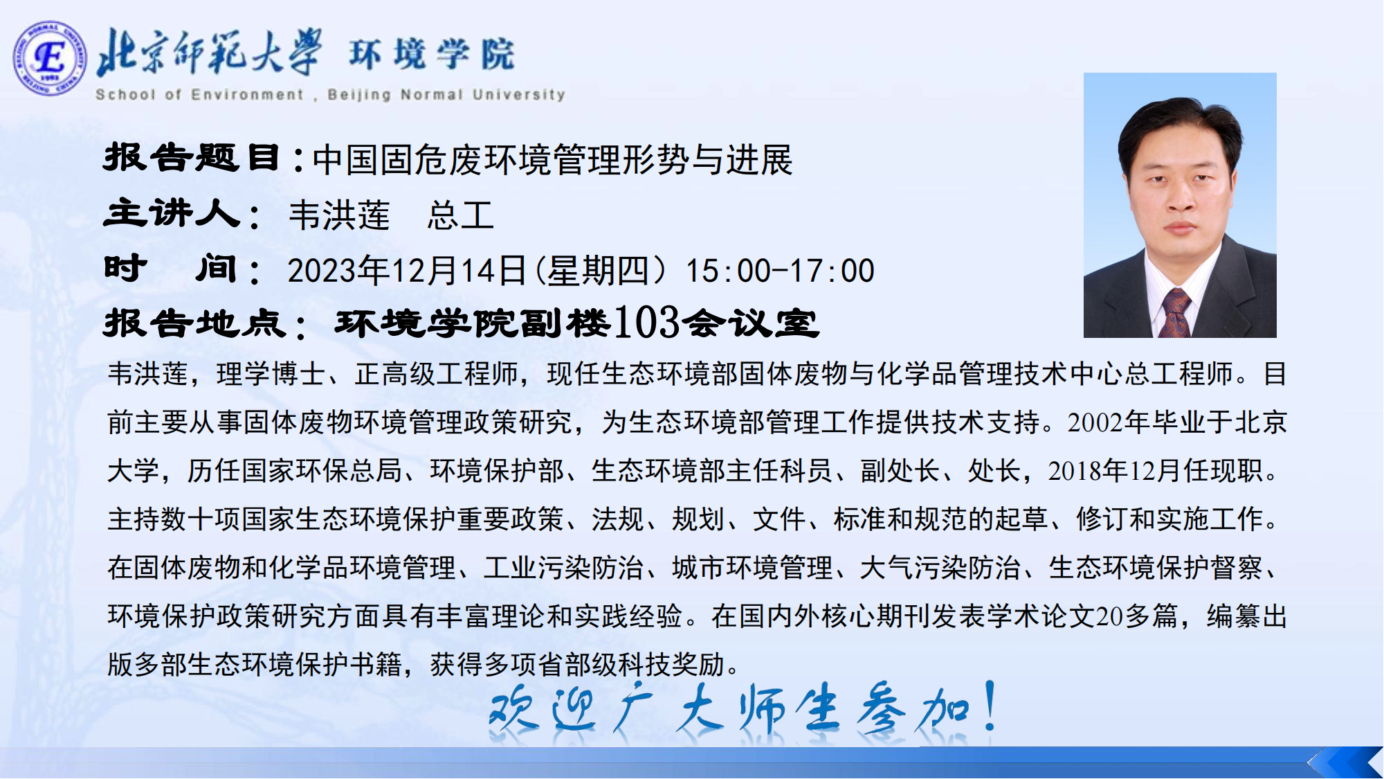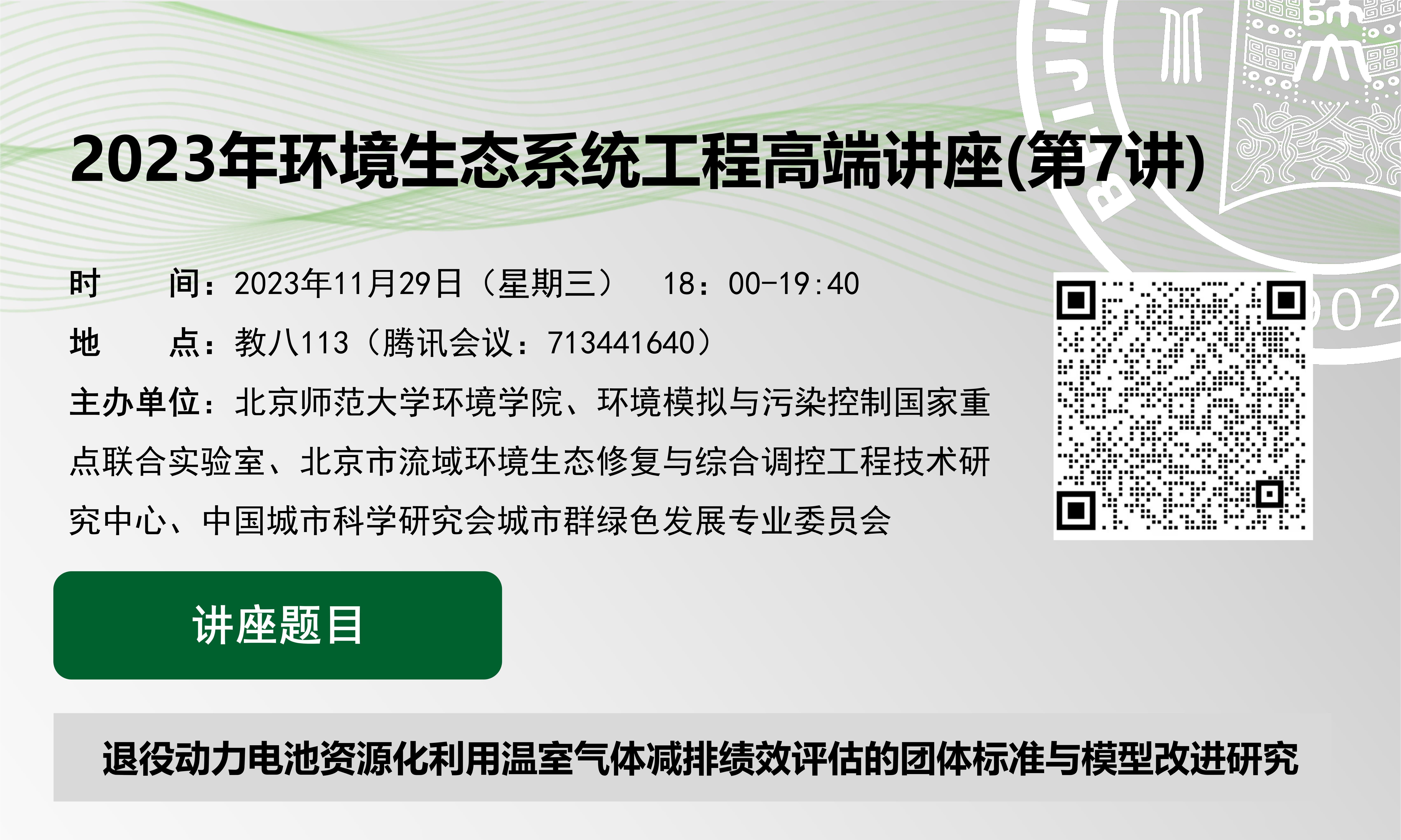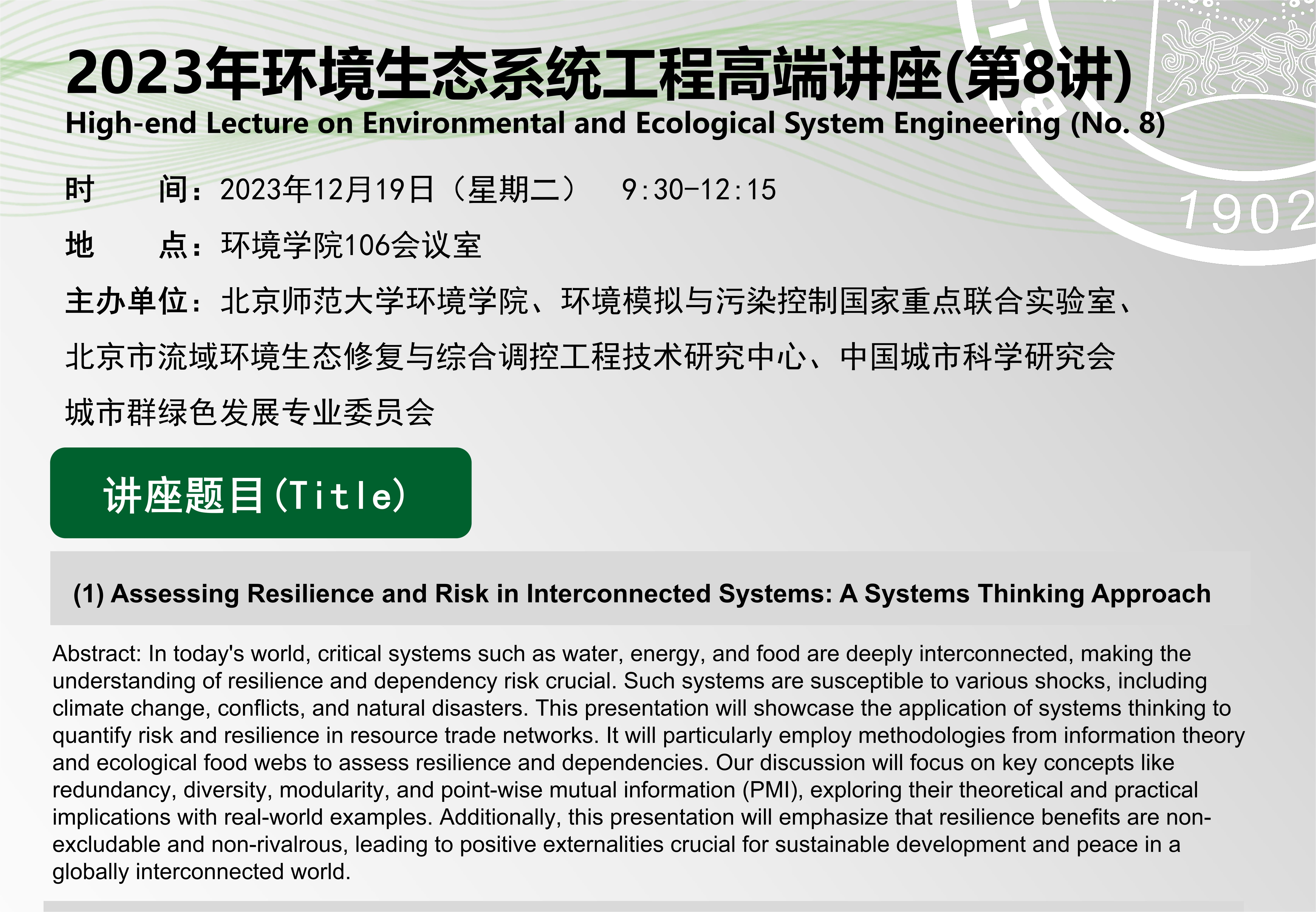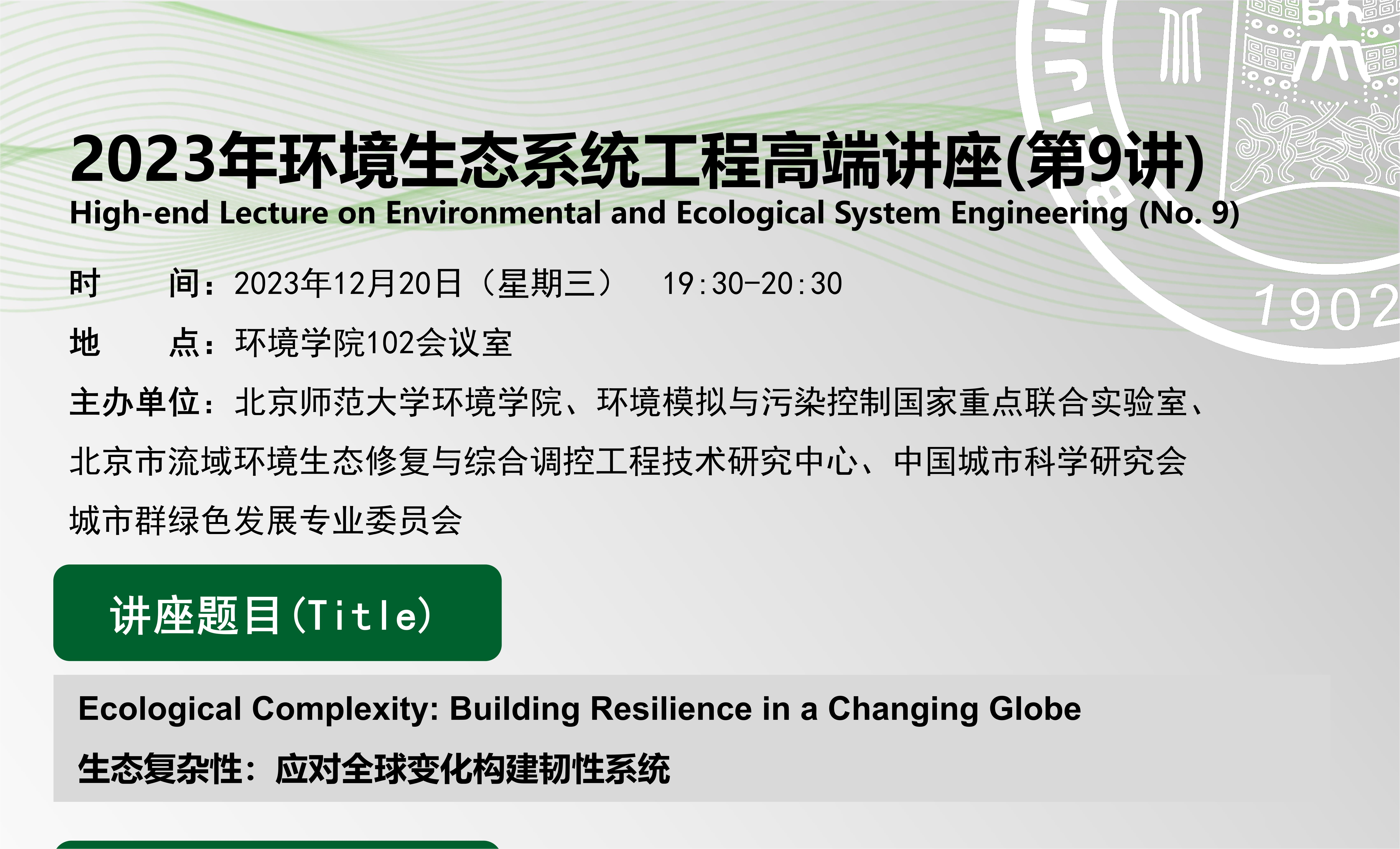 京师环境讲坛预告(校庆&院庆篇)