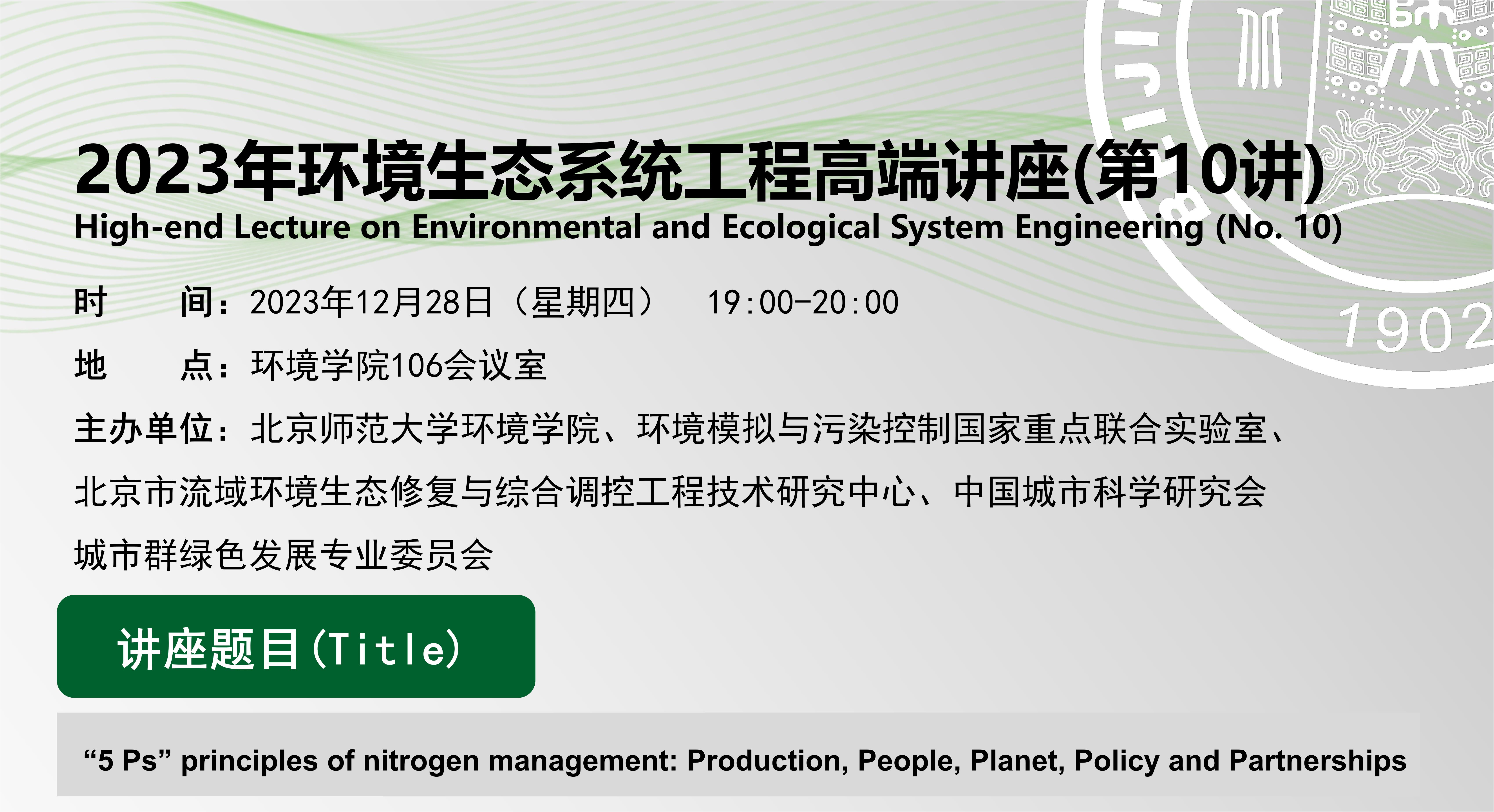 讲座题目:“5 Ps” principles of nitrogen management: Production, People, Planet, Policy and Partnerships