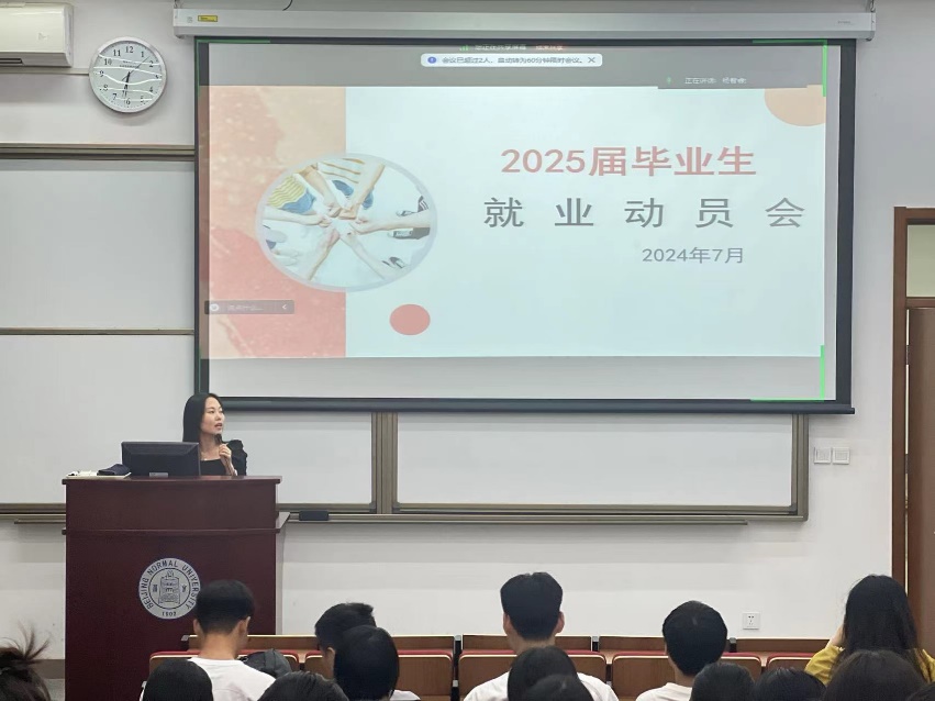 2024年7月8日,必威betway西汉姆联2025届全体毕业生就业动员会在生二教室顺利召开,学院一百余名毕业生分别在北京校区和珠海校区通过线下和线上方式参会。