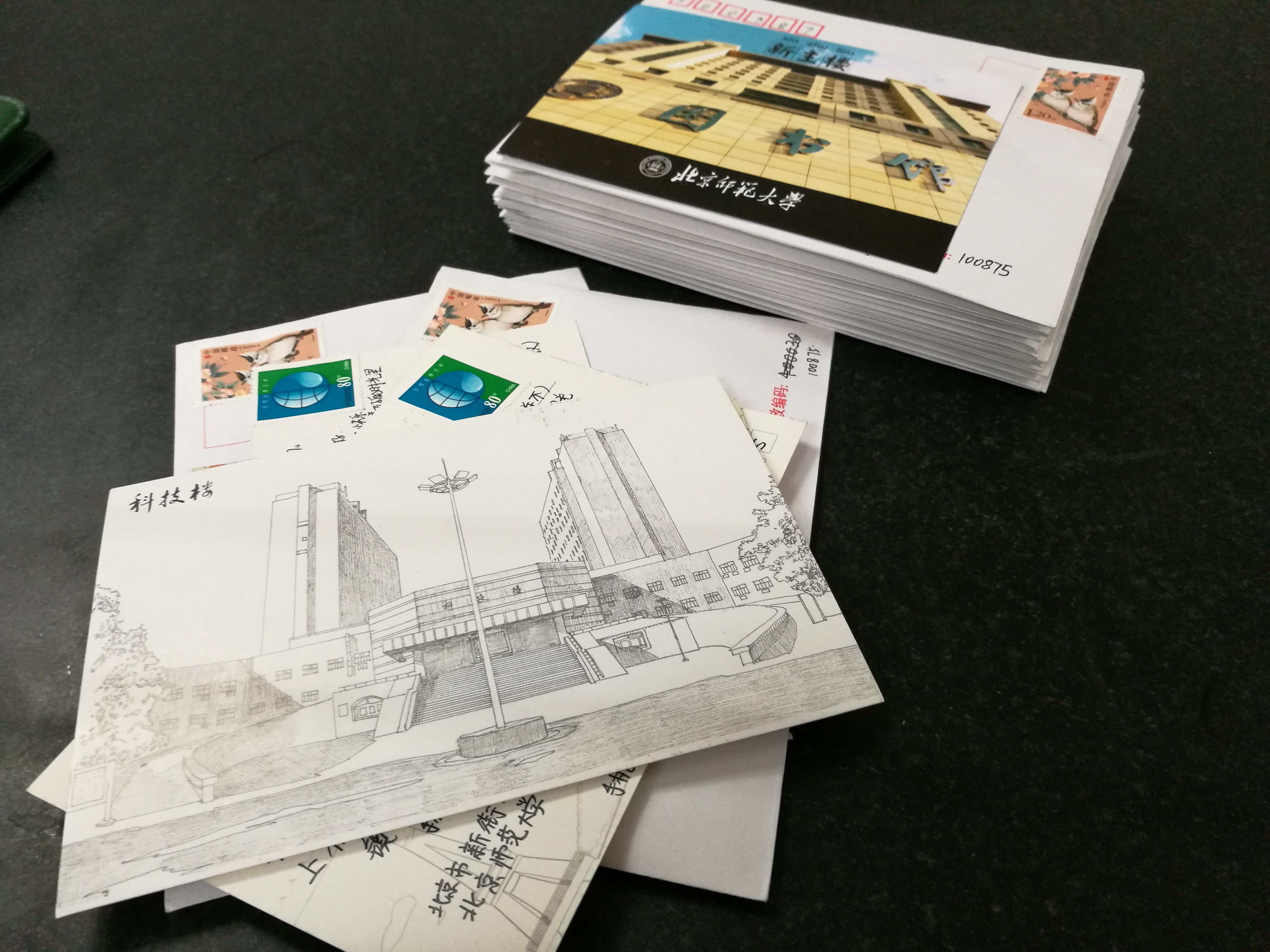 之后,分团委为每位大一的同学提供师大的明信片。手绘的,摄影的;风景的,人文的......一字,一景,一图,一物,无不记录着师大的美好。