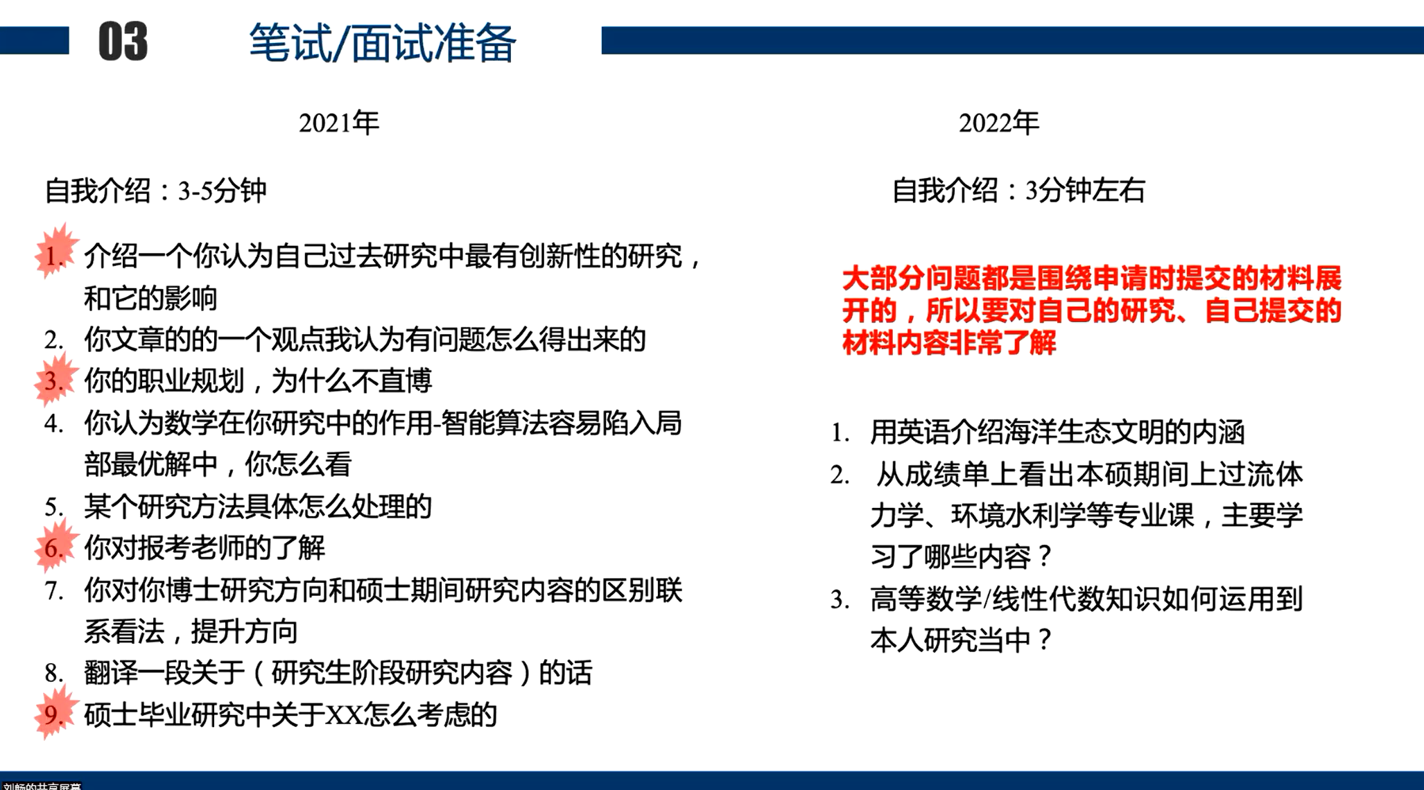 然后是为我们介绍了笔试与面试流程,强调我们一定要突出自己过去的研究与创新,从而增加自身竞争力。提问环节师姐强调了文章数量和质量是申请外校的优势所在,而且要认真对待每一个申请环节。