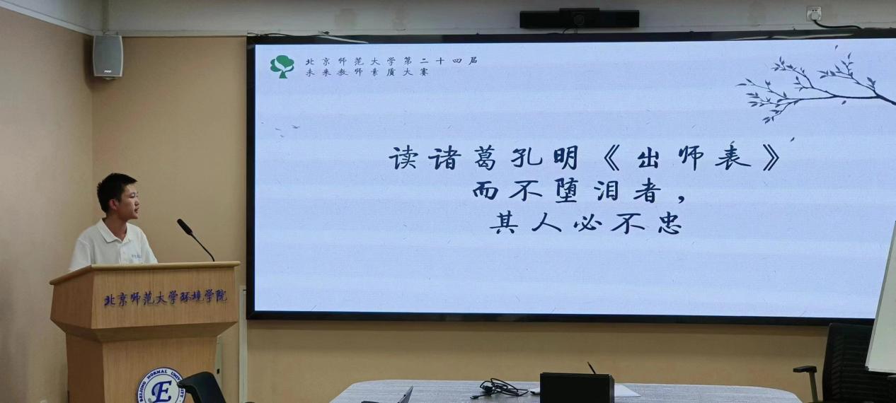 在本次未来教师素养大赛中,在选择选题时,同学们的选题既具有创新性,又有实际应用价值。从初中课本上的课文到高中知识点,从千古流芳的古文到妙趣横生的数学公式。这次比赛不仅要求选手们的专业知识与技能,还要求教育教学实践中的创新能力、时间管理、语言表达等方面的优良表现。构思新颖的PPT和板书相辅相成,令评委们连连称赞。