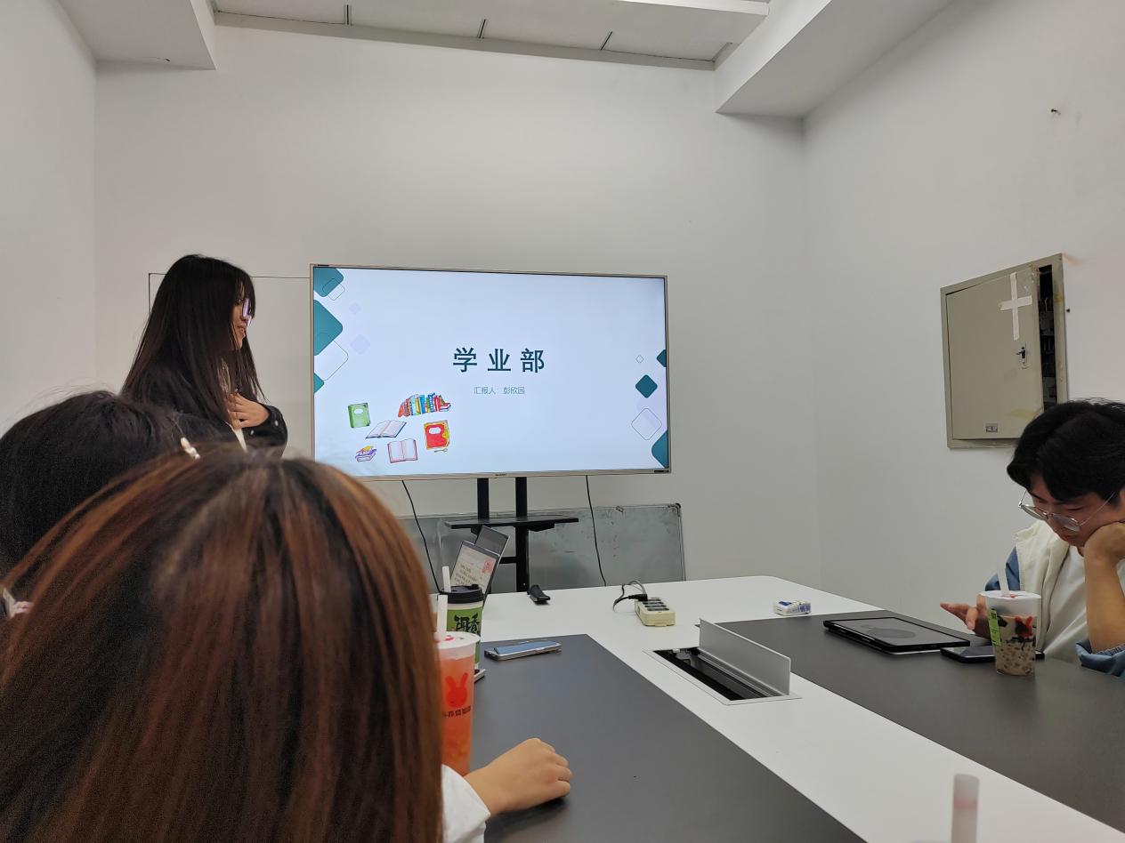 紧接着,团学主要负责人曹彧嫣然对学生会成员提出了两点要求和建议:其一是要树立规则意识,遵守规章制度。学生会成员应该秉持着严肃负责的态度对待学生会的工作,不能拖拉工作任务。其二是要调整心态,保持积极乐观,当学生会成员齐心协力完成工作任务看到工作成果时是会有满满的幸福感和成就感的。通过团学主要负责人的分享,部门成员认识到要以严肃热忱的态度投入到工作之中去。