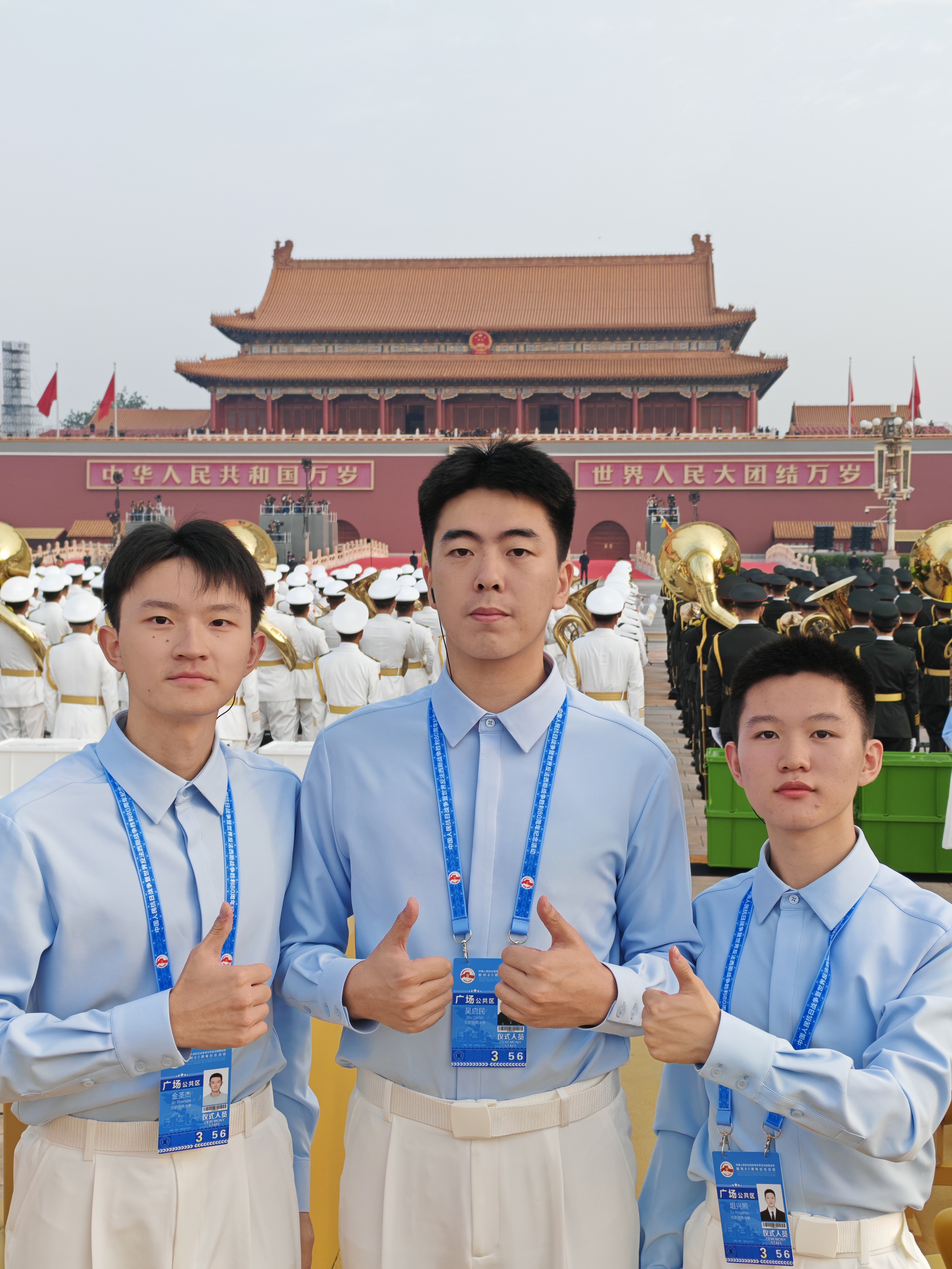 必威betway西汉姆联团委书记吴启民、本科生金圣杰、俎兴照、王可馨以及研究生张启月,分别加入了由3000人组成的广场合唱团和由4265人组成的大会志愿者队伍。其中参与广场合唱团的4位师生:吴启民、金圣杰、俎兴照、王可馨,自5月集结以来,历经117天的艰苦训练,人均训练时长约240小时;参与志愿者队伍的张启月同学,负责东红低区观礼台服务保障岗,包括秩序引导、观众服务、氛围营造,历经80天的严苛培训,参与培训约100小时。他们用用嘹亮歌声缅怀革命先烈,用青春姿态传承红色基因,展现了北师大环境学子的家国情怀与时代担当。