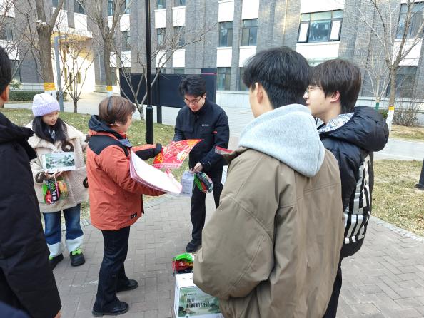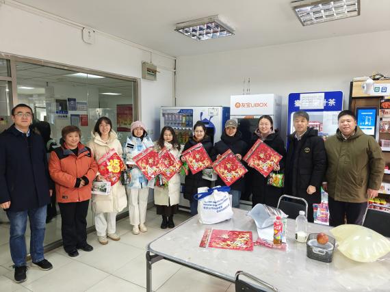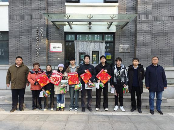 1月17日下午,学院领导班子前往海淀、育荣、昌平三个校区为不同年级的留校学生送去了饱含关怀的慰问品与新年祝福,亲手将一箱箱牛奶、一张张福字、一袋袋零食发放到学生手中。