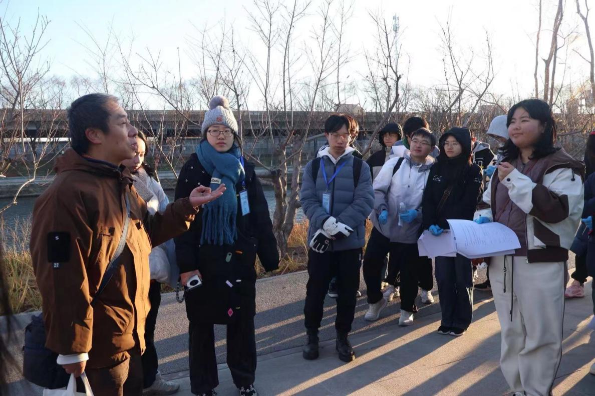 来自北京环境科学学会的仇老师带领大家游览滨水绿廊,向大家介绍了清河的概况。仇老师以专业的科普视角出发,给学员们普及了清河水作为再生水不仅具有重要的生态功能,还承载着丰富的历史和文化内涵。讲解过后,学员们对于清河的地理风貌、生态环境以及它在城市发展中的作用有了更加深入的了解。