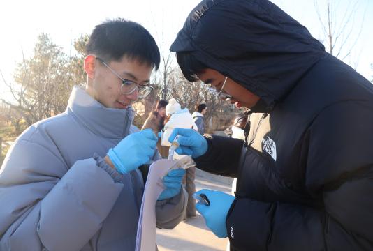 1到20被随机打乱到各个位置,同学们需要又快又准地找到它们并按照从小到大的顺序依次将它们翻开,此时组内的分工协作显得尤为重要,尽管天气寒冷,但是同学们依旧奋力奔跑,展现出了分秒必争的拼搏精神。