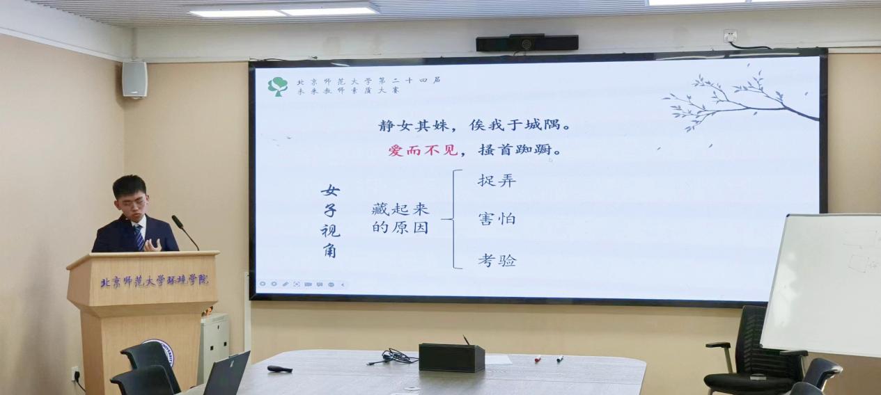 在本次未来教师素养大赛中,在选择选题时,同学们的选题既具有创新性,又有实际应用价值。从初中课本上的课文到高中知识点,从千古流芳的古文到妙趣横生的数学公式。这次比赛不仅要求选手们的专业知识与技能,还要求教育教学实践中的创新能力、时间管理、语言表达等方面的优良表现。构思新颖的PPT和板书相辅相成,令评委们连连称赞。