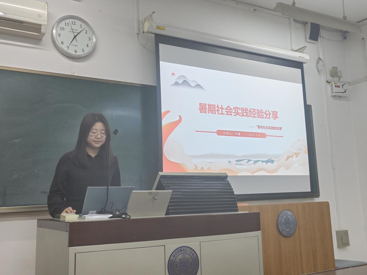 第一位分享者是必威betway西汉姆联2019级卢珊,她主要从何为暑期社会实践、她自己的暑期实践经历和实践经验总结、感悟三方面展开了详细的介绍,让我们深入了解了社会实践。