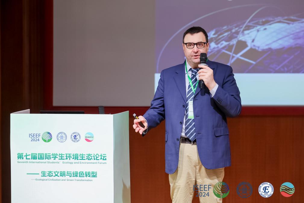 中国高等教育学会生态文明教育研究分会理事长、清华大学碳中和研究院院长、中国工程院院士贺克斌为开幕式录制视频致辞,指出在当前全球生态环境日益严峻的背景下,绿色转型已迫在眉睫。我们必须以科学的精神、务实的态度,推动经济社会的全面绿色转型。我们既要注重技术的创新和研发,提高资源利用的效率,又要加强国际合作,共同应对气候变化带来的挑战。要将生态文明的理念融入到教育的全过程,引导学生们树立尊重自然、保护环境的意识;加强科研合作,共同攻克绿色转型中的技术难题,为全球的可持续发展贡献智慧和力量。