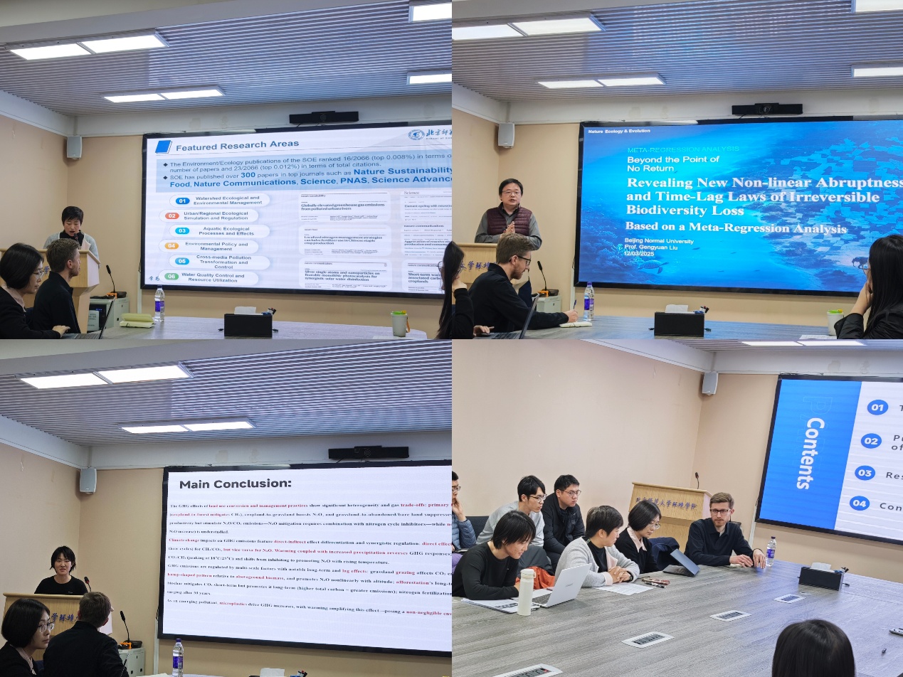 在温轶凡老师进行简要开场及嘉宾介绍后,徐琳瑜书记介绍了必威betway西汉姆联基本情况及《自然·生态与进化》与我院研究方向的契合点。之后分别由刘耕源副院长及博士研究生代表进行了特色研究汇报,展示了学院在生态与可持续发展领域的最新探索。汇报内容扎实、视角新颖,体现了学院的研究特色与学术活力。