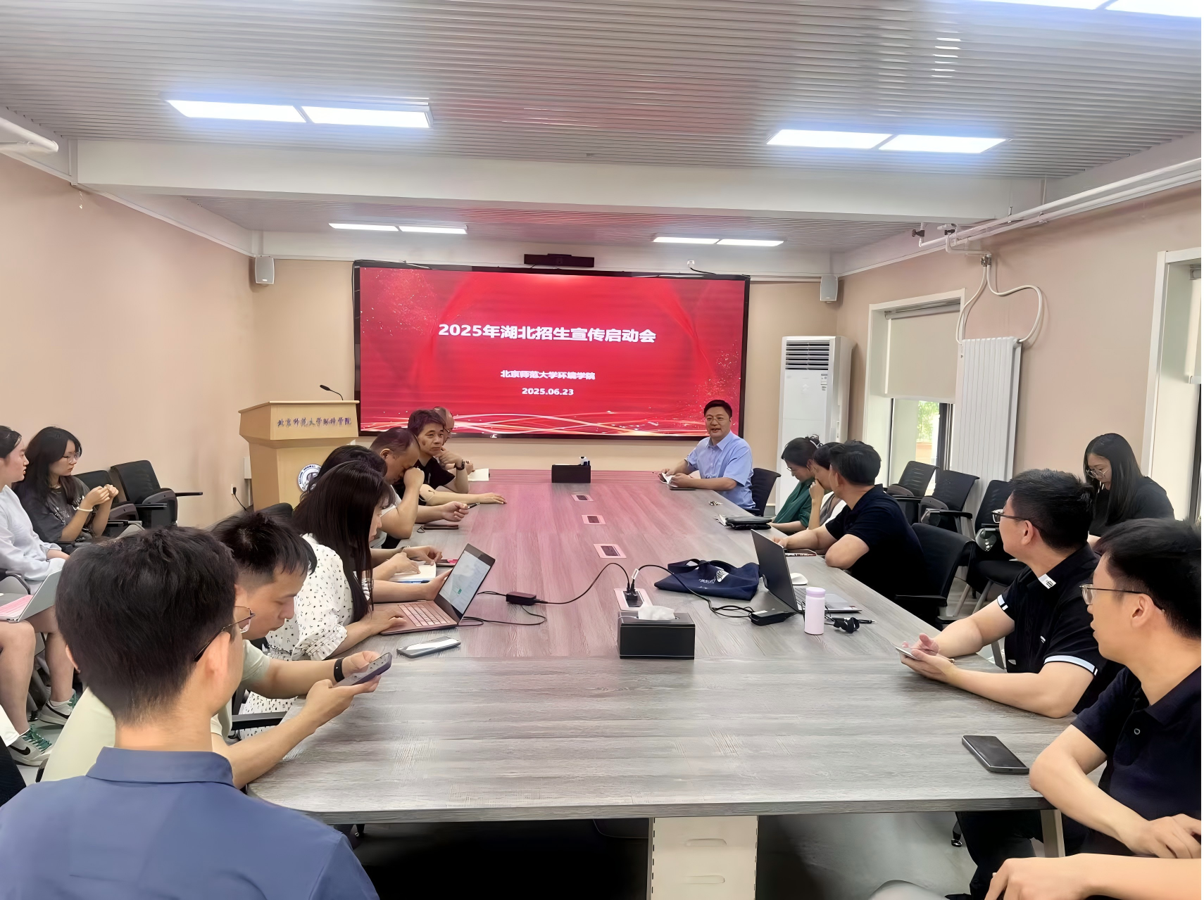 6月23日上午,必威betway西汉姆联在106会议室召开了2025年湖北省高招宣传启动会。院长沈珍瑶、副院长冯成洪及27位老师和学生志愿者出席会议,副院长冯成洪主持会议。湖北招生宣传组副组长谢湉围绕2025年湖北省招生宣传工作的总体目标、主要任务、注意事项等进行了详细部署。